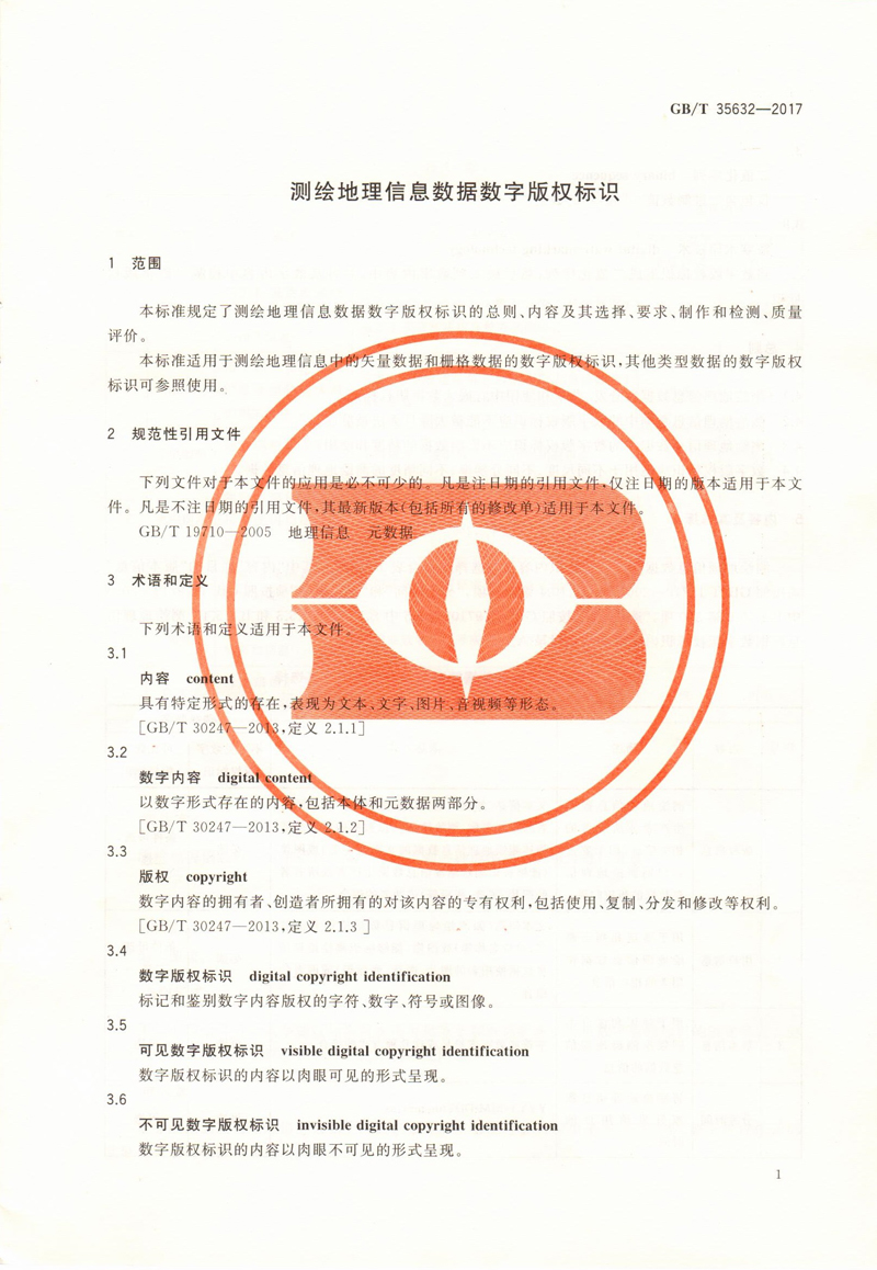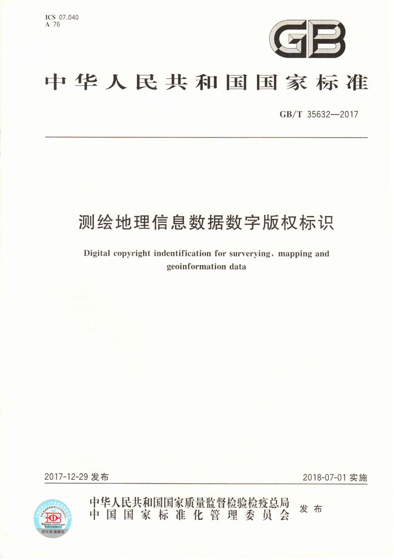 國家標(biāo)準(zhǔn)化管理委員會(huì)正式頒布我司參與制定國家標(biāo)準(zhǔn):《測繪地理信息數(shù)據(jù)數(shù)字版權(quán)標(biāo)識》